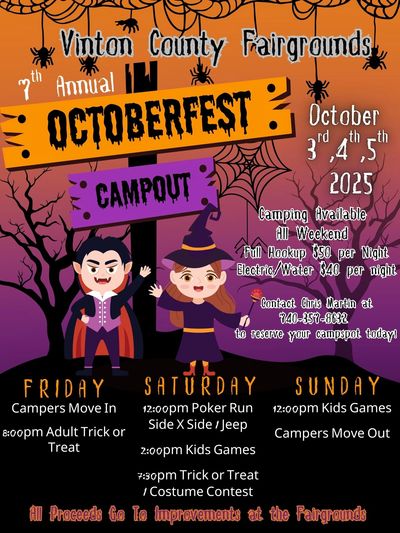 Campers will be set up for trick or treat beginning at 7:30pm. Costume Contest will be voted on by the campers.